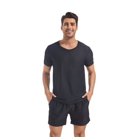 MEN'S SCOOP NECK TAN-THROUGH SHIRT