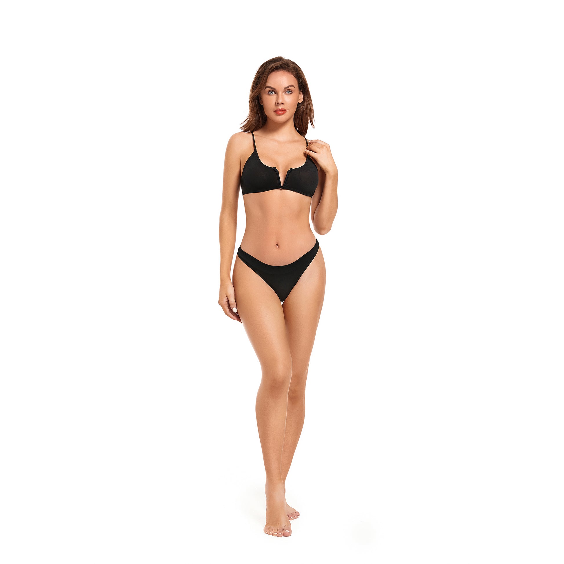 - The V-neck top enhances your neckline while the high-cut bottoms elongate your legs for a flattering, sleek silhouette.