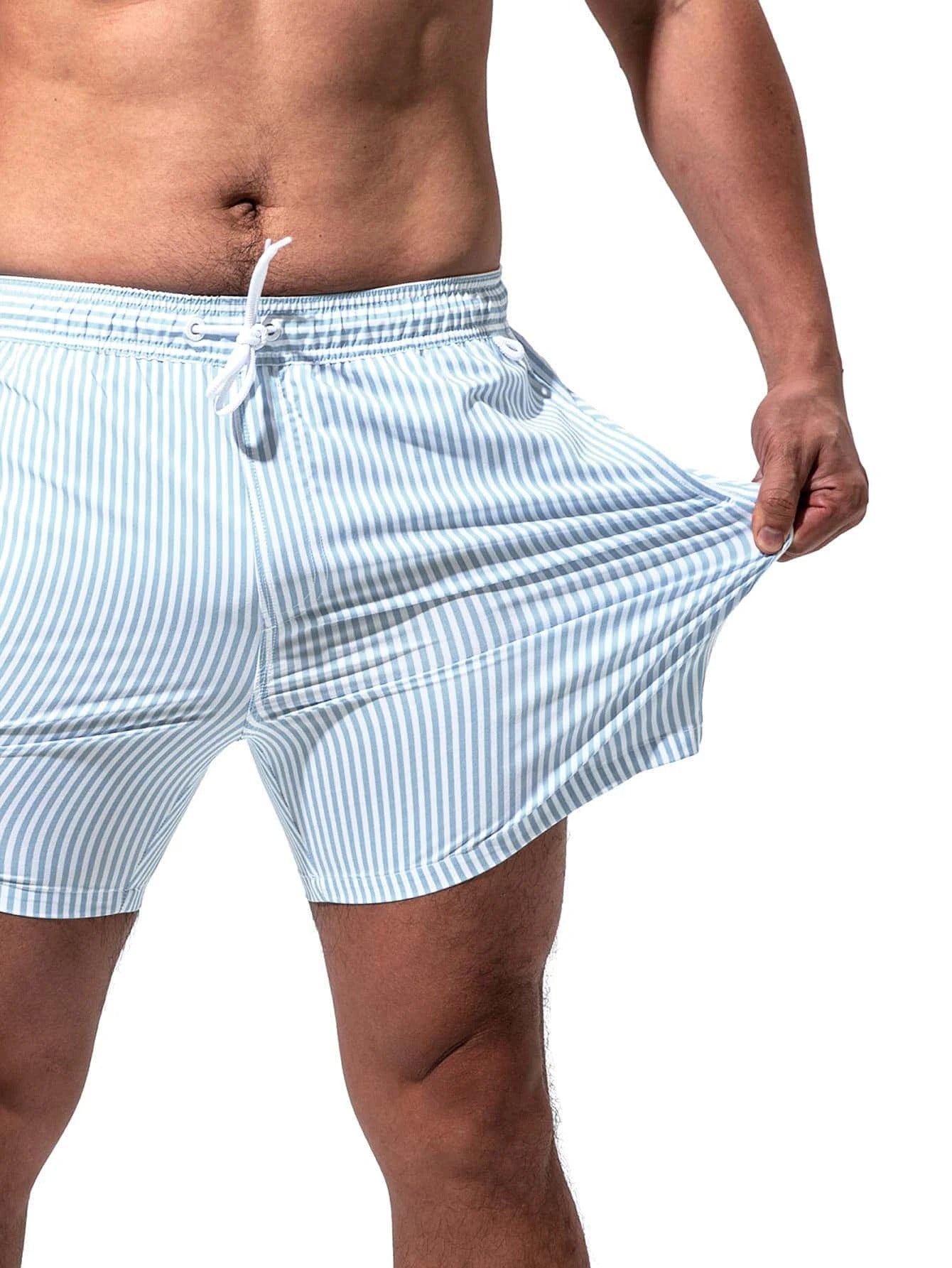 MEN'S TAN-THROUGH SWIM SHORT - Light Blue Pinstripe